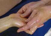 Todo o corpo do bebé, que deve estar nu, é massajado.